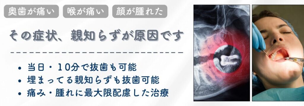 歯の痛み・歯茎の腫れ・差し歯が取れたなど、緊急での処置をご希望の際は、お電話にてご連絡ください。当日診療いたします。